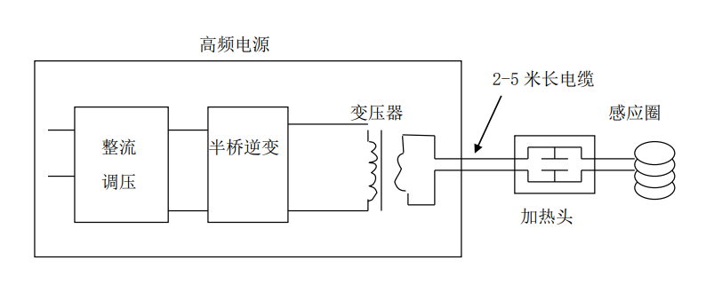 (3) 加熱效率高:輸出采用并聯(lián)諧振電路,能量損耗最低化。無(wú)論是高頻變壓器的損耗和電纜和變壓器的無(wú)效電感損耗都降到了最低;