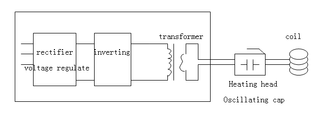 Output part is of parallel oscillating structure, there is only capacitor inside heating held box, so heating head is very small and light. Furthermore, large heating current is oscillated directly between capacitor and induction coil and current through cable is still small, so heating efficiency of SPYD heaters is very high.