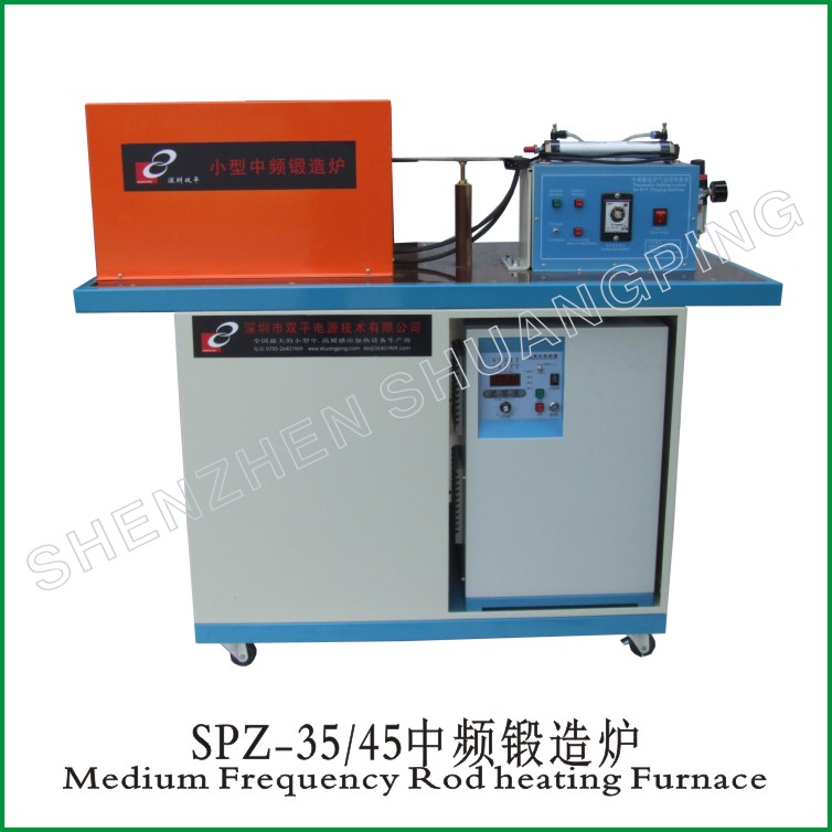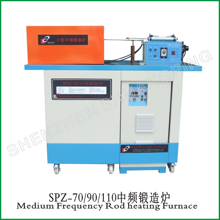 The furnace includes basically the SPZ medium frequency generator, the compensating cap, the working table, the heating coil, coil cover, rod feeder and so on. For some applications, the infrared sensor, temperature controller and automatic rod feeding systems can also be included.
