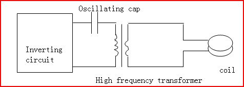 In SP-15 and SP-25 series machines, series oscillating circuit is applied as circuit below, through high frequency transformer, low voltage and high current power is output to go through the induction coil.  SP-15 and SP-25 series machines are the first models developed in our company, SP-15 uses MOSFET components and SP-25 used IGBT components, both use our first generation inverting control technology, the machines are featured with simple structure, high reliability and low price, and they are easy to use and to repair, and are now the most widely used machines both in China and abroad.