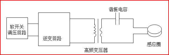 此系列設備采用串聯(lián)諧振電路,諧振后通過高頻變壓器輸出低電壓、大電流的高頻電源。諧振結構如圖: