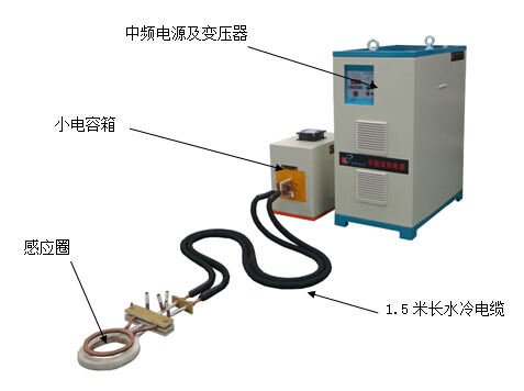 基本組成為:(中頻電源 + 中頻變壓器) + 小電容箱 + 感應(yīng)圈。